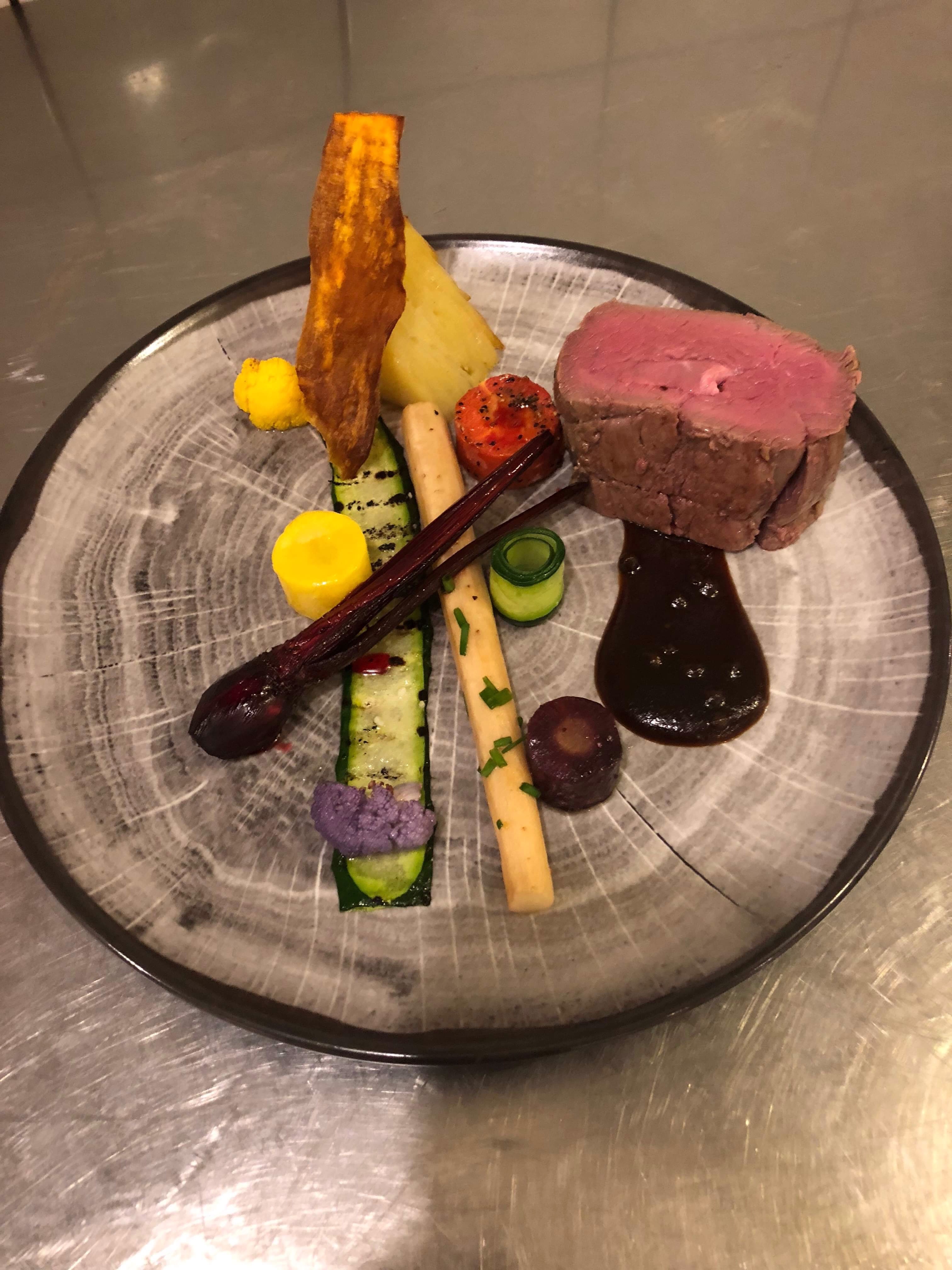 Oksefilet m/kartoffeltærte, stegte svampe